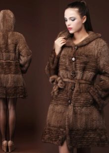 Knitted fur coats are presented in different versions.. A short fur coat looks perfect from fur yarn; it holds its shape best. Long models, as a rule, are made of whole mink, and knitted fragments act as decorations. As an option - a combined thing, when the hood and sleeves are made of knitted fabric, and the rest is made of whole fur. Fur coats up to the middle of the knee are the most fashionable this season. They usually have a shortened sleeve, no collar.