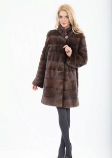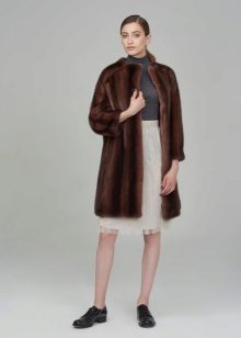 Almost half of all mink products are sewn from brown mink, so the variety of models and styles is also great. The most common and practical is a classic fur coat with a straight cut midi or maxi length. Such models often have a hood and a fur or leather belt.