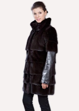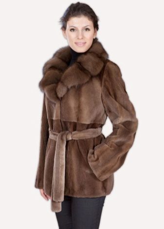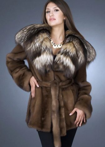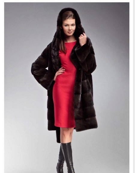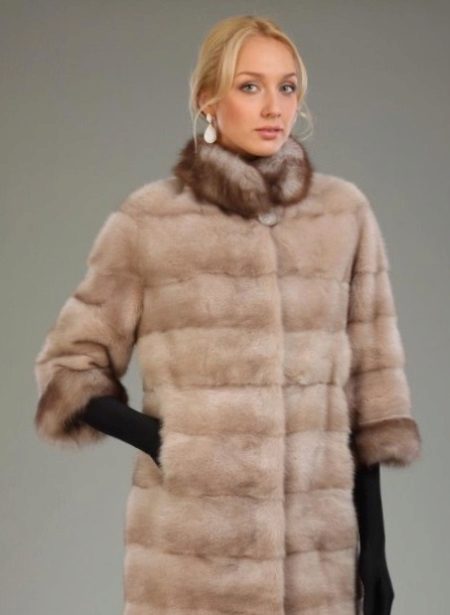 Since fur is a natural material, fur or leather will be the best decor for it. Due to the smooth and uniform structure, mink coats from mink are quite easy to combine with almost any kind of fur. Often there are collars and hoods from sable, arctic fox, fox, lynx and other valuable types of fur. Such contrasting combinations of color and texture give the product an original and even more luxurious look.