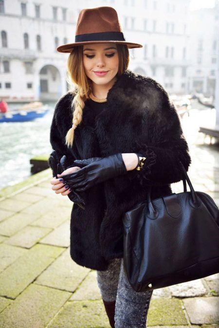 The oversize fur coat and walnut color is the best fit for creating a stylish youth look. Light clothing favorably emphasizes the rich color of the fur, and leather gloves, a large bag and large jewelry hang in such a laid-back outfit that is perfect for a weekend.