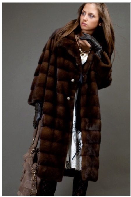 Fur coats sewn in a special assembly method called the "cross" deserve special attention. The skins are sewn together not vertically, but horizontally. This technique and use of brown fur gives the effect of imitating an expensive sable fur coat.