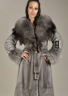 The hood and collar of the fur coat (namely, they are most often sewn from silver fox) are the most exposed places to wear fur clothing. On the silver fox with its long fluffy pile and motley coloring, spots, traces of cosmetics and various damages will not be so noticeable. Plus, this fur is much warmer than mink. Therefore, a mink coat with a silver fox is the best solution in severe frost and windy weather. But such a model looks just like a royal, and you need to wear it accordingly.
