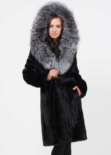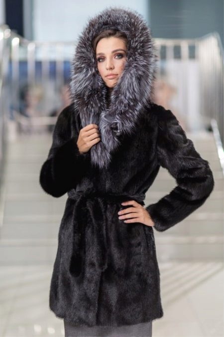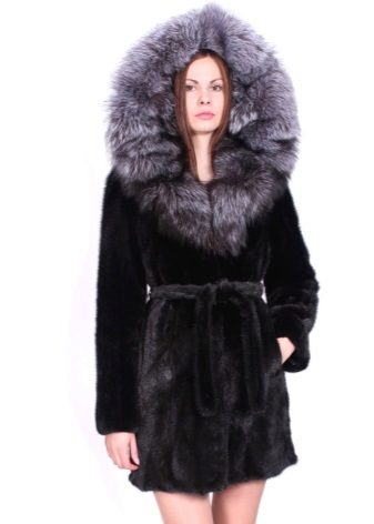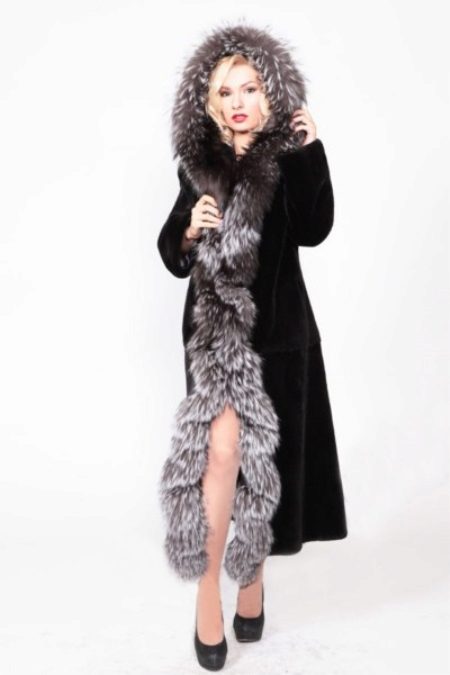 Models of mink coats with silver fox are diverse. As a rule, with a lush fur the hood or a collar is most often trimmed. Moreover, in this case, the length of the clothes does not matter: the chic finish looks advantageous in both the long and short versions.The hood, made entirely of black and brown fox, can allow you to completely do without a headdress, as it is very warm.