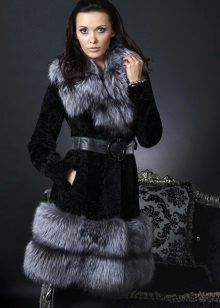 Fur coat floors can also be decorated with black and brown fox fur. In this case, invisible hooks usually act as fasteners.
