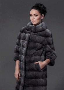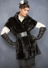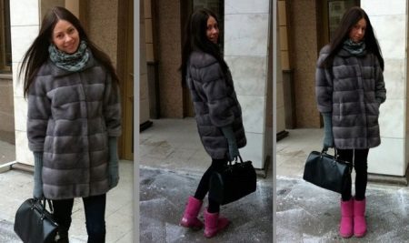 Short fur coats never went out of fashion, they are elegant and practical. So the fur coat shown in the photo, a noble gray color with a bluish tint, will always emphasize your beauty. The sleeves are very easily detachable, but they do not turn into a vest, but into a fur coat with sleeve ¾, which is always suitable for an evening out. Under it, you can wear long gloves, for example black.