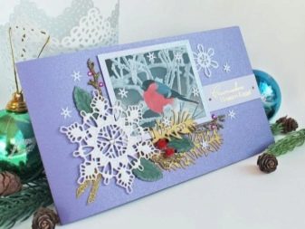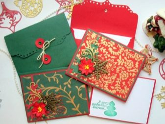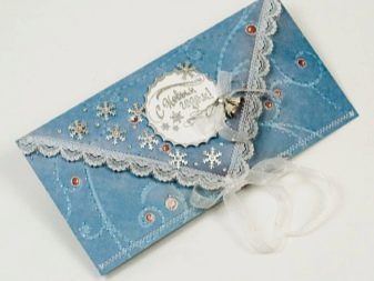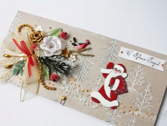 For holiday cards, you can use the resources that are at hand. As a basis, you can take wrapping paper, which is left from gifts from last year. Using the template printed on the printer, it is worth making blanks for the future envelope. In this case, pieces of lace, satin ribbon, as well as beautiful napkins, can come in handy.