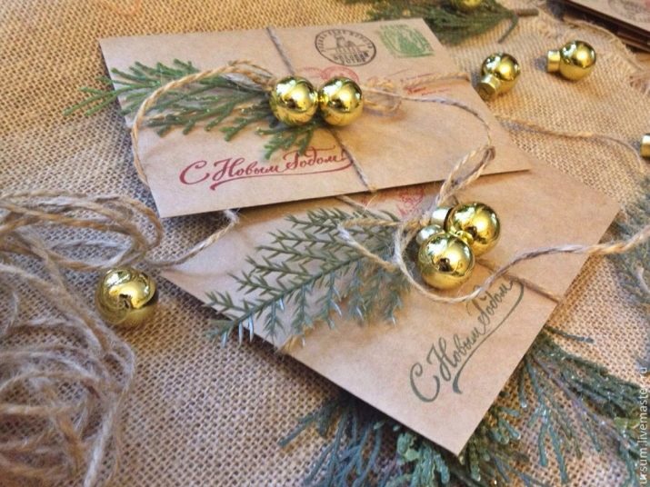 You can decorate the message with shiny Christmas toys, decorate with a spruce twig and fix with decorative twine. Such an additional decor instantly transforms the craft. If the child is small, parents should help the child in the design of the crafts.