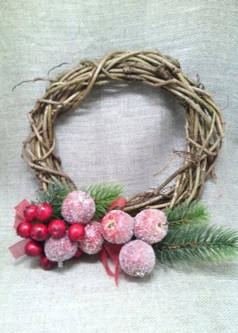 - From the spruce branches. These are very beautiful options for wreaths. They are often supplemented with compositions of tinsel, artificial berries and fruits.