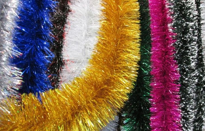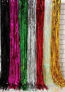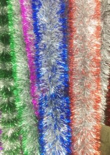 there is thick threads resembling mink fur. There are plenty of interesting options. Tinsel can be combined with other varieties of jewelry to create bizarre masterpieces. The material for the manufacture of such rain is metallized polyester.