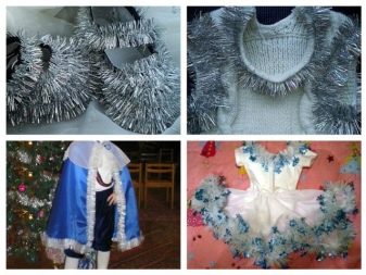 - With the help of tinsel, you can make a crown for the girl, other holiday accessories. Often with shiny decor sheathe a dress or New Year's costume.