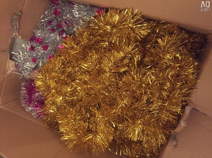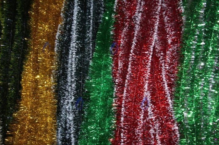 Tinsel can be used to separate and seal other decorations. It is advisable to wind the rain onto postcards or cardboard so that it does not get tangled or tear. There is no point in washing it, because it is an affordable jewelry, if it goes bad, it’s easy to buy a new one. Tinsel contributes to the creation of a festive mood, pleases with its bright design. It is used not only to decorate the Christmas tree, but also to decorate the whole house.