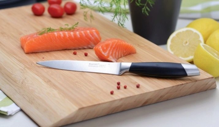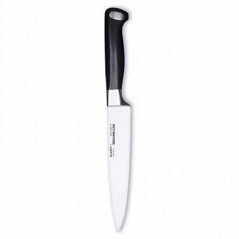 - Gourmet. One-piece chrome-molybdenum-vanadium steel blade with a handle coated with polyformaldehyde (plastic). It is not recommended to leave near an open flame and high temperatures. The length of the blade is 12–18 cm.