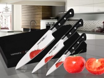 The most common sets are those that include 3 basic models of knives: for cleaning vegetables, universal and cook. If financial possibilities allow, then you can purchase combination sets consisting of 3 main knives and 2-3 additional (for cutting fillet, bread, tomatoes and cheese).Kits complemented by accessories such as a magnetic holder, a peeler and scissors are very popular.