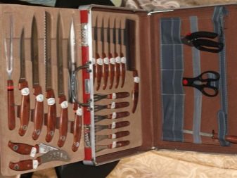 The complete set of sets can include both knives and additional accessories. Kitchen sets differ among themselves in the number of items. Most often, manufacturers produce products up to 5 pieces in a set, from 5 to 10 or more 10. Sets consisting of only cutting tools are intended, as a rule, for household cooking and are available in two types: camping and for kitchen. In this case, the first option is equipped with a special box (case), which simplifies the transportation and storage of tools.