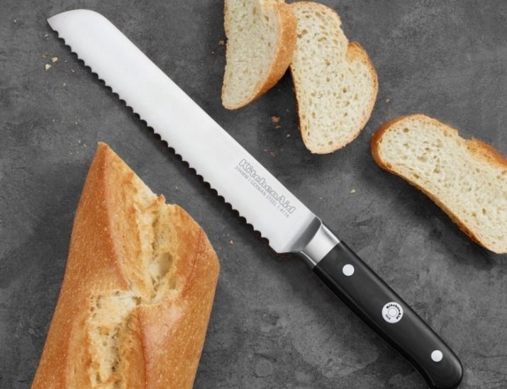 - For slicing bread. Knife with a wide long blade with a wave-like sharpening. This tool can not only cut the hard crust of bread, but also chop the chocolate or gently cut the cake. When choosing such a knife, it is best to give preference to models made of steel. They are scratch resistant and do not chemically react with products.