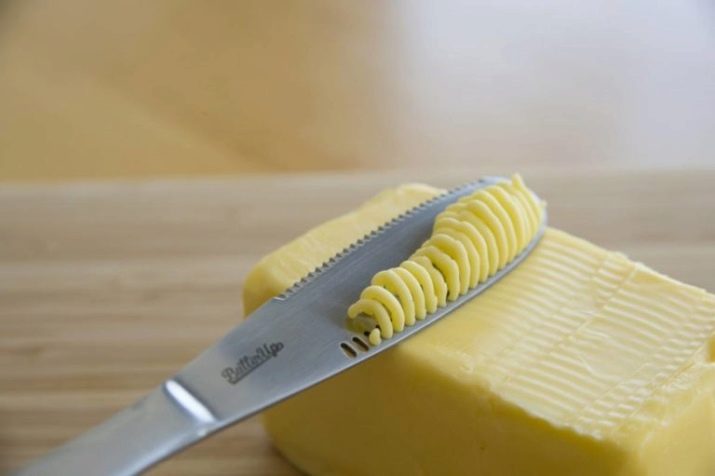 - For butter. Such a knife is used both for slicing and for spreading butter on bread. It is also used for processed cheese. The tool has an elongated shape, looks like a spatula, its end is not sharp, wide and rounded. The average length of such products does not exceed 13 cm. They can be used both for cooking and serving.