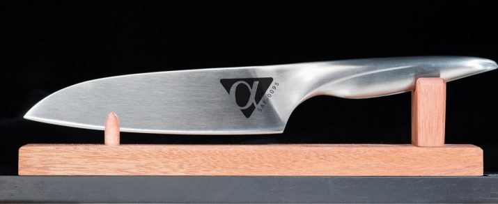 - "Samura Alfa saf-0085 / Y". It is a compact and versatile set consisting of a chef-knife, stand and sharpener. With this tool, you can cut fish, meat and chop fruits with vegetables. Despite the fact that the country of manufacture of this product is Japan, it was successfully launched by Russian manufacturers using Japanese technology. The blade of the product is made in the European style, so it is convenient to hold it in your hand. The blade has a length of 201 mm, its hardness on the Rockwell scale is 60.