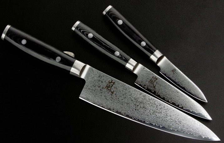 - "Yaxell gou yaz7010". This set includes professional Damascus knives. They have an original design and unsurpassed sharpness. The length of the chef's knife blades does not exceed 25.5 cm, its hardness is 63 units. The pluses of products include ergonomics, efficiency and the ability to use in professional cooking. Minus is a very high price.