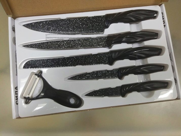 - The Power of Granite. This set consists of vegetable, universal, cutting, cook and bread knives. In addition, the manufacturer supplies the kit with a convenient ceramic peeler. Thanks to this set, you can quickly cook both simple and complex dishes. Due to the fact that particles of granite are applied to the surface of the blade, the product has increased strength. The knife handle does not slip in the palm of your hand, as it is made of bequelite. The disadvantage of the set is that it can often be found on the market in the form of low-quality fakes.