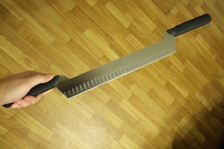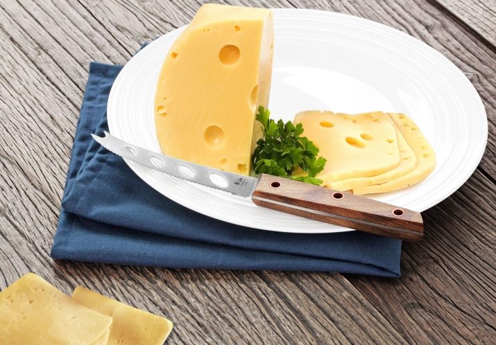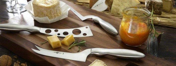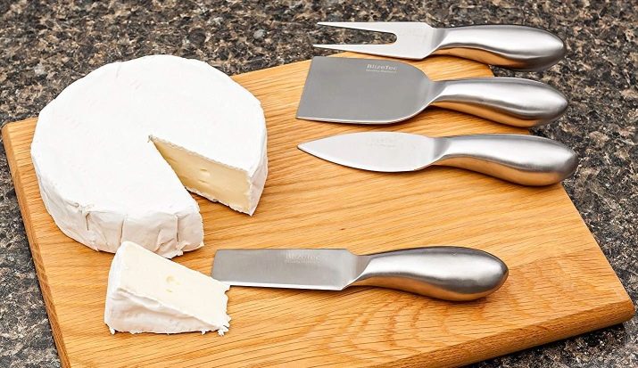 For cutting cheese, only a knife with a blade is used, which contains 15% chromium and 10% nickel. The necessary information can be obtained from the marking. Models for soft cheese, which is hard to cut, always have recesses in the middle. But for a solid product, other modifications are needed that look similar to a spatula or chisel. With such a tool, cutting into portioned pieces and removing strong crusts is not difficult.