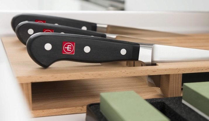 Categorically it is impossible to stack knives in bulk in boxes, in boxes and on shelves. This leads to rapid loss of sharpness and rust. It is extremely important: each tool should be used only for the work for which it is intended. The best boards are wooden; when they come in contact with them, the blades are least blunt. When the work is finished, the knives are washed immediately, and then the blades are wiped.