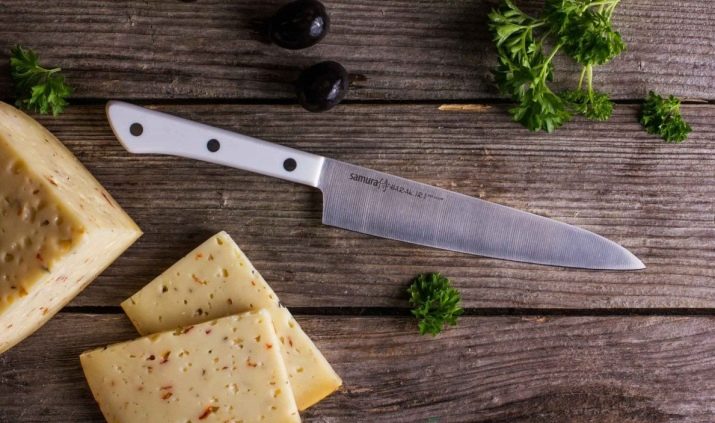 But it is impossible to limit oneself to general requirements. Even if the knife for cutting cheese looks the same as a regular one, in fact it is arranged differently. The classic option is a long knife with an ergonomic handle structure. Company designers Samurawho developed this version, provided for the use of a wavy cutting edge. Special "air pockets" exclude sticking of cheese fragments to the surface of the knife. In the descriptions, it is noted that the joint of the blade with the handle is raised. This allows you to distribute the load as correctly as possible.