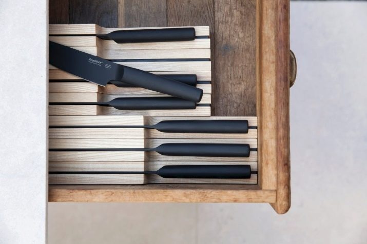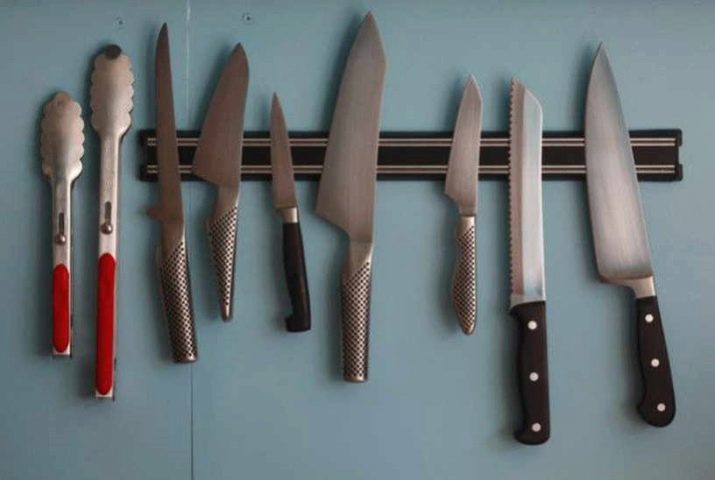 A modest sized kitchen uses hinged magnetic holders. If there is enough space, use a conventional stand. Important: rotating stands are more comfortable than usual - they allow you to quickly get to the right tool.