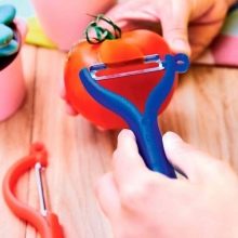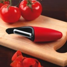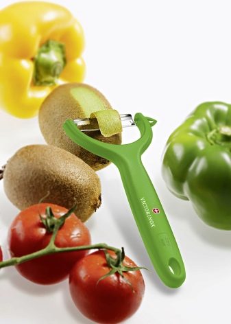 - Victorinox - manufacturer Switzerland. Initially, such a piller was declared as a knife designed to clean only tomatoes and kiwi. But thanks to the durable blade and its reliable fastening, such a peeler can be used for other vegetables, fruits and root crops. Economy knife - horizontal with a double movable blade. The body is plastic, lightweight.