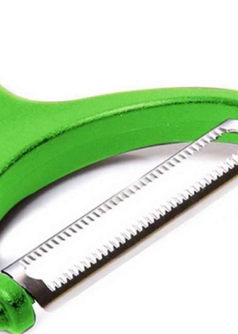 - Double Sided Peeler at one end it has a classic blade, and at the other end there is a pointed peak designed to cut out defects from products, for example, small areas of wrinkled pulp, rot, or eyes in potatoes.