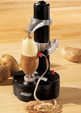 Everything is simple here - the peeler can be domestic and industrial. In the first case, it has a compact size and fits easily in the hand. Until recently, they were presented only in an autonomous version, that is, they cleaned products through manual exposure. But recently, an automatic model has appeared on the market that peels fruits and vegetables on its own, without human intervention. Such a pilot works from connecting to the electrical network.