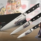 Each of these series includes knives for a wide range of purposes (fillet, nakiri, santoku, chef-knives, etc.).