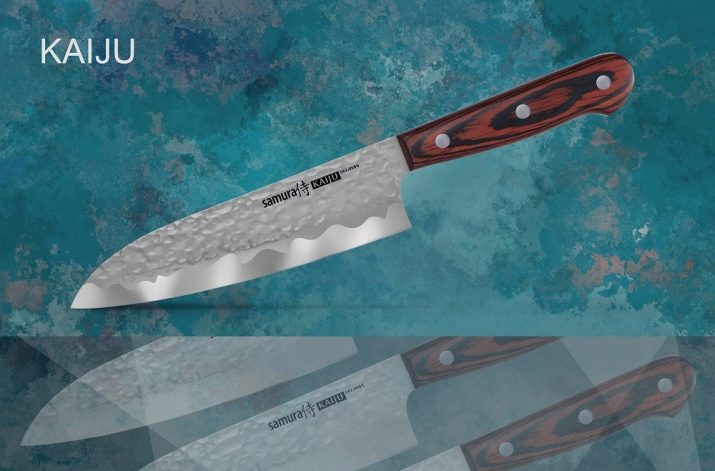 An excellent option from the manufacturer Samura - a knife Santoku collection Kaidju from a mixture of steel and mahogany materials. The blade length is 180 mm, made of hammered aus-8 steel, has a corrosion-resistant coating, with a wooden handle. Such a knife costs from 3199 to 5299 rubles. Warranty period is 12 months.