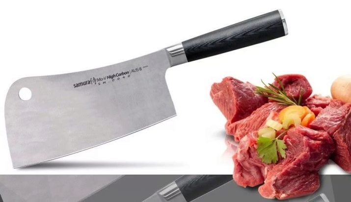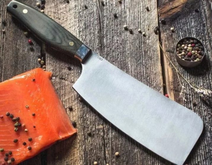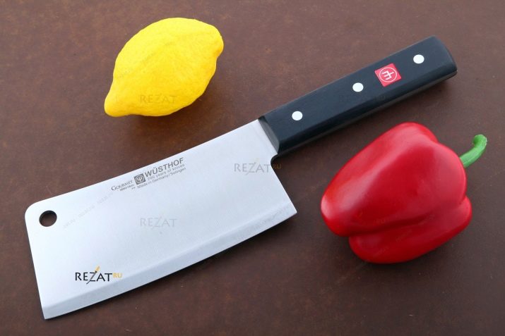 A knife-ax is the younger brother of an ordinary ax. Its structure is such that the blade has a shape remotely similar to a real ax. It protrudes forward in the form of a square rounded at the edges, which allows you to wield such a product without intense chopping movements with your hand. Unlike an ordinary ax, the butt is thickened, but not clumsy in shape. It is an indispensable tool for cutting both layers of meat in which small and medium-sized bones are found, as well as chopping frozen fillets.