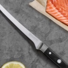 Longer options help to cut the fillet. Sharpen the filet type at an angle of 15 degrees, and raise the tip of the tip. Such innovations to the limit facilitate the thinning of meat and fish raw materials. An important requirement when creating a fillet knife is the flexibility of its material. Too hard metal elements are simply not able to bend.