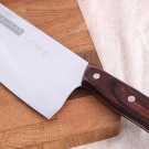 Impeccable classics of a kitchen knife are European products. This design has a perfect balance.The official name for this format is French Chef. For the manufacture of pens used wood. The handle is fixed on 3 rivets.