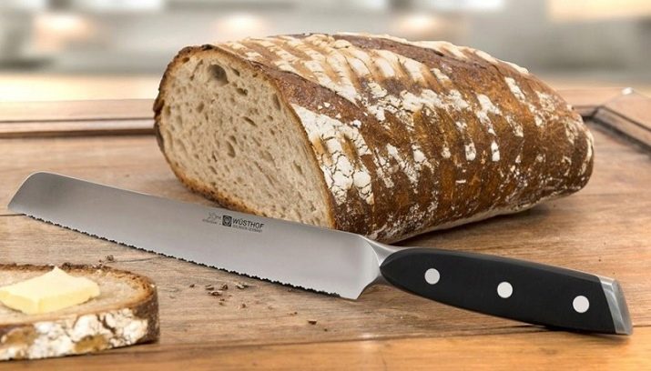 Bread knives are equipped with serrated blades. In length, it reaches 20-25 cm, and the width of the entire blade is exactly the same. At the end there is a characteristic fillet. The material must be extremely hard, because flexibility is not too fundamental. A characteristic feature of a bread knife is a serreytore sharpening, capable of cutting through a strong crust and not crumple crumb.