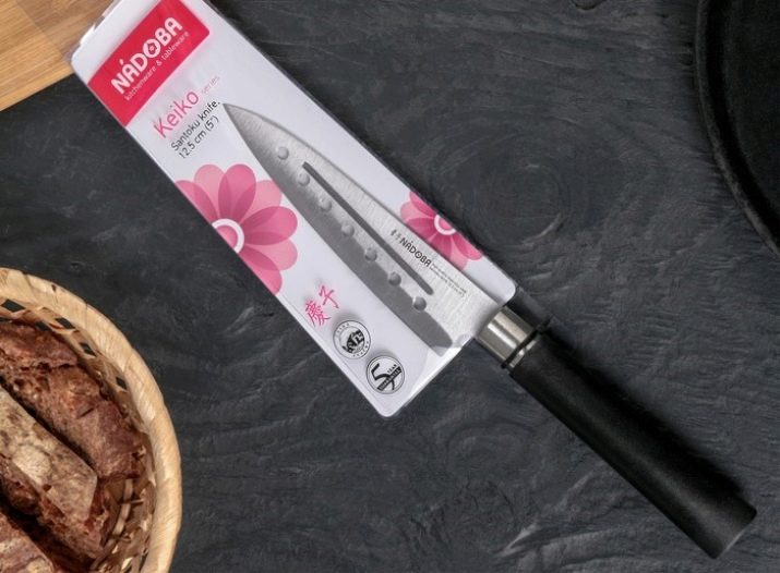 Of Japanese knives, Keiko Santoku from Nadoba is very popular. The knife is made in a traditional national style. The plastic handle fits into your hand without any problems and does not slip. Each instance is sold in a separate plastic case.Labeling covers contains information about the material and the manufacturer.