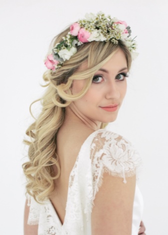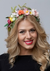 Wire wreath rims are a popular accessory in ethnic style. On a wire, flowers from different materials are fixed. Popular models with roses, poppies, cornflowers, daisies, lilies, orchids, peonies and even tulips.