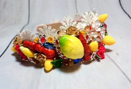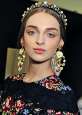As always, the most shocking hoops are presented at Dolce & Gabbana. For example, this summer they offer fashionable women to decorate their hairstyle with a yellow-green hoop, on which are applied small leaves and yellow-green lemons.