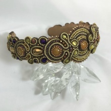 To create such accessories use a special soutache braid, ribbons, pieces of fabric from which flowers, leaves, bows are made. Additionally, they are embroidered with beads and covered with sparkles, so they look very impressive.