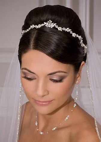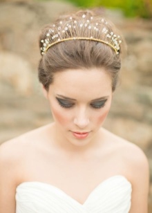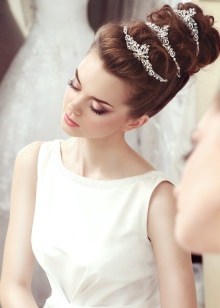 A double or triple bezel with lace or sequins will decorate a high hairstyle.