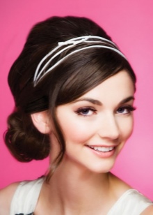 - In retro style. Metal or plastic rims with unusual decorative elements. For example, a hoop with a veil or a small hat decorating a hairstyle will look stylish. They are suitable for evening or carnival images.