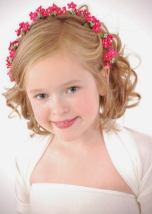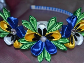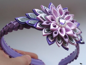 For a matinee, a stylish hoop for children, decorated with flowers using the kanzashi technique, is suitable. If a daughter goes to kindergarten so far, her festive look can be supplemented with a rim with the ears of Mickey Mouse or his girlfriend, Minnie Mouse.