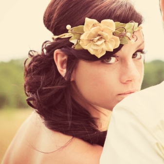 Most often, for wedding bows, choose soft pink, mint, lavender or a shade of cappuccino. You can choose a hoop for a dress or take an accessory in a contrasting color.