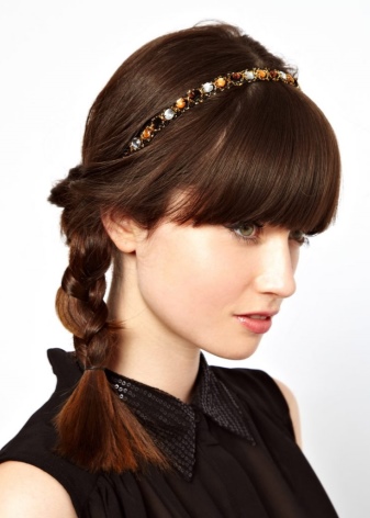 Owners of the correct face shape and not very wide forehead can simply fix their loose hair with a rim, and, if desired, slightly twist the ends. This is a universal option, which is suitable regardless of whether you have short or long hair.