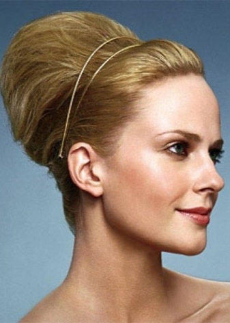 If you want to stretch your face, a bouffant on the top of your head will suit you. The hair needs to be combed back and fixed with a rim, and so that the styling does not fall apart, fix the curls with varnish.