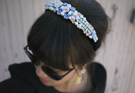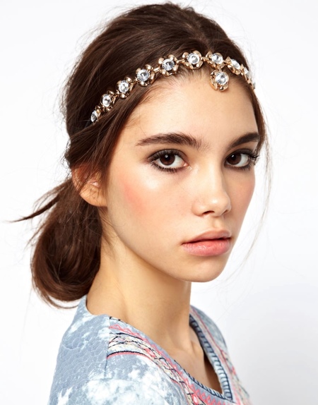 Headbands with bright stones and with rhinestones that shimmer in the sun look gorgeous. Unfortunately, they are only relevant in special cases, for everyday wear it is better to pick up something less flashy.