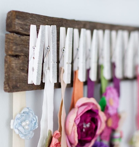 Wall-mounted modules and vertical stands are a good solution for rims with surround decor. To prevent flowers, bows, and other decorations from wrinkling or deteriorating, it is better to hang your hoop on a special hook.