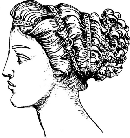 A metal hoop called fillet was worn by both women and men. He was needed to maintain a haircut on the crown of the head. This accessory can be found in many antique images. Such rims were made of copper, gold, and even shells of turtles.