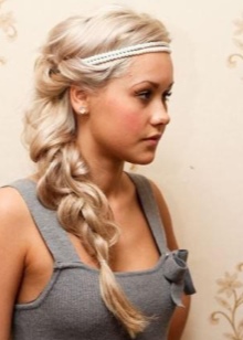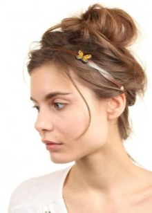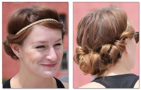 The rim for this hairstyle should be thin and delicate, without a massive decor. It must be worn so that the hair in front and on the sides remains free. After that, the hoop at the back is attached with invisibles.